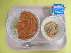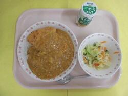 ・カツカレー・オニオンドレッシングサラダ・牛乳