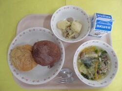 ・2色揚げパン(きな粉・ミルクココア)・ジャーマンポテト・野菜スープ