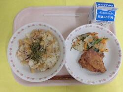 ・ちらし寿司・鶏の唐揚げ・大根の昆布漬け・牛乳