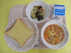 ・はちみつレモントースト・ポークビーンズ・海藻サラダ・牛乳