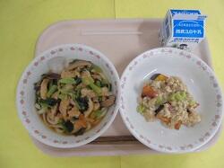 ・冷やしきつねうどん・かぼちゃのそぼろあんかけ・牛乳