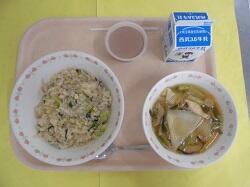 ・小松菜チャーハン・ワンタンスープ・チョコババロア・牛乳