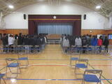 3学年揃って行なう学校朝会は、この日が最後となりました。今回も、六中生は定刻よりも早く、体育館に入館、整列することができました。最後まで、しっかりと六中のスタンダードを守ることができました。朝会では、校長先生からは、「『上級生を見習おう』は実現できたか」というお話がありました。その後、表彰と今月の目標のお知らせがありました。