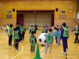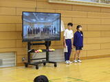 今回の学習発表は動画を使って行われました。それぞれの学校で工夫を凝らし、劇をやったり、合奏をやったりした様子を発表してくれました。第六中は、歌とダンスの発表にプラスして、最後に「六中クイズ」を出題しました。学習発表の後は交流会として、大玉をつかったレクを行いました。