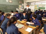 本時は、市場経済の仕組みと金融を学ぶために、「価格はどのようにして決まるのか」という課題を立てて、学習を進めました。「価格は、需要と供給によって決まる」ということは、知識としては知っているものの、では具体的にはどういうことか、という問題になると、中学生には実感がわかず、難しいところもあったようです。授業では、「価格」と「買いたい量」をそれぞれ縦軸・横軸にとり、「需要曲線・供給曲線」をグループごとに完成させるという活動を行いましたが、売り手側、買い手側それぞれの立場に立って理解することに手間取っていたようです。しかし、生徒同士の学び合いの中で、最終的にはほとんどの生徒が理解に達し、応用問題に取り組んでいました。
