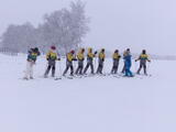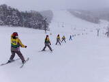 今日は曇り空で、小雪がぱらつく天気です。最終日ということで昨日までよりさらに奥の、山頂まで登るリフトに乗りました。山の上の方は少し吹雪いており、悪い視界とふかふかの雪に苦戦する生徒もいましたが、昨夜降った雪のおかげで、ゲレンデの雪質は3日間で一番良かったです。