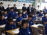 職員研修として、すべての職員で授業を参観します。教科書の「コトコの涙」という教材を読んで、「分かり合うこと(相互理解・寛容)」について考える授業です。老人ホームでのある出来事について、登場人物それぞれの立場や心情等について考えたり、起きてしまったトラブルについて「このままでよいのだろうか」と考える中で、生徒たちは相手の意見を尊重することや自分の意見を伝えることが大事であること、そのことが良い人間関係にもつながるし自分の成長にもつながることを感じていたようでした。授業の後は、職員同士で授業の内容について議論したり、指導者としてお招きした十文字大学教授の浅見哲也先生にご指導いただいたりして、より良い授業を行うために勉強を行いました。