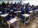 昨日、小学校の卒業式を終えた六中校区の6年生が、一日入学のために六中にやって来ました。体育館ではじめの会を行い、その後、教室で国語と算数のテストも行いました。6年生は、中学校の校舎の中に入り、廊下やトイレを見て「わぁ、広い。」といった感想を漏らしていました。無事に行程を終えて、1日入学は終わりました。新入生の皆さん、4月8日の入学式の日に、元気に登校することを楽しみに待っています。