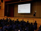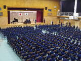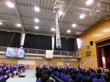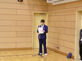 今回は、オンラインでの実施でした。校長からは、冬季オリンピックでの日本人選手の活躍を踏まえ、成長するために必要なことについて話をしました。その後、人権作文、書き初め展覧会、美術展、卓球及びバドミントンの大会での表彰を行ったあと、生活安全委員から今月の生活目標についての話がありました。