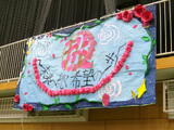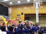 1,2年生の出し物の後は、3年生からのお礼のメッセージと合唱を披露し、最後は第六中三送会恒例の生徒会長によるくす玉割りで締めくくりました。