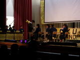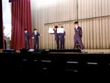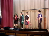 休憩をはさんで、2年生の出し物のスタート。まずは、ダンスパフォーマンスに始まり、続いて、テレビの某バラエティ番組をまねた出し物で会場は爆笑の渦に。最後はしっとりと合唱で締めくくりました。
