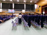 練習としてですが全員に卒業証書授与を行い、卒業生合唱も歌いました。卒業式当日は1,2年生は参加しないのですが、今日は予行として3年生の立派な姿を下級生に見せることができたと思います。3年生はあと少し練習を積み重ね、当日はより素晴らしい卒業式となることを期待しています。
